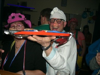 Kostümierung war oberste Pflicht - Feuerwehrchef Joachim Herbel serviert die besten Häppchen persönlich !